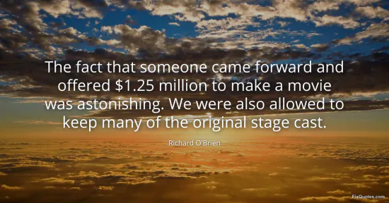 O'Brien, Richard. (2026, January 16). The fact that someone came forward and offered $1.25 million to make a movie was astonishing. We were also allowed to keep many of the original stage cast. FixQuotes. https://fixquotes.com/quotes/the-fact-that-someone-came-forward-and-offered-121204/