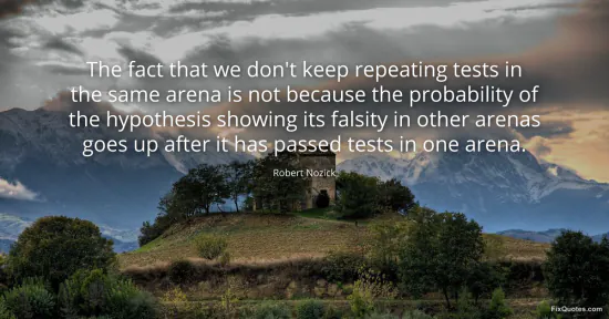 Nozick, Robert. (2026, January 15). The fact that we don't keep repeating tests in the same arena is not because the probability of the hypothesis showing its falsity in other arenas goes up after it has passed tests in one arena. FixQuotes. https://fixquotes.com/quotes/the-fact-that-we-dont-keep-repeating-tests-in-the-157110/