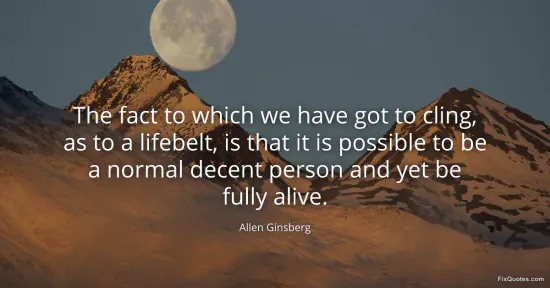 Ginsberg, Allen. "The fact to which we have got to cling, as to a lifebelt, is that it is possible to be a normal decent person and yet be fully alive." FixQuotes. January 14, 2026. https://fixquotes.com/quotes/the-fact-to-which-we-have-got-to-cling-as-to-a-39724/.