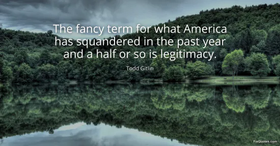 Gitlin, Todd. (2026, January 18). The fancy term for what America has squandered in the past year and a half or so is legitimacy. FixQuotes. https://fixquotes.com/quotes/the-fancy-term-for-what-america-has-squandered-in-21626/