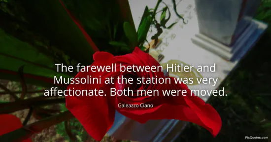 Ciano, Galeazzo. "The farewell between Hitler and Mussolini at the station was very affectionate. Both men were moved." FixQuotes. January 18, 2026. https://fixquotes.com/quotes/the-farewell-between-hitler-and-mussolini-at-the-18604/.