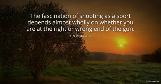 Wodehouse, P. G. (2026, January 16). The fascination of shooting as a sport depends almost wholly on whether you are at the right or wrong end of the gun. FixQuotes. https://fixquotes.com/quotes/the-fascination-of-shooting-as-a-sport-depends-85189/