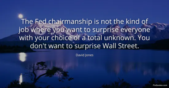 Jones, David. "The Fed chairmanship is not the kind of job where you want to surprise everyone with your choice of a total unknown. You don't want to surprise Wall Street." FixQuotes. January 15, 2026. https://fixquotes.com/quotes/the-fed-chairmanship-is-not-the-kind-of-job-where-160163/.