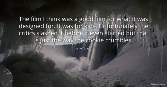 Guarini, Justin. (2026, January 16). The film I think was a good film for what it was designed for. It was for kids. Unfortunately the critics slashed it before it even started but that is just the way the cookie crumbles. FixQuotes. https://fixquotes.com/quotes/the-film-i-think-was-a-good-film-for-what-it-was-107228/