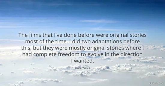 Salles, Walter. "The films that I've done before were original stories most of the time, I did two adaptations before this, but they were mostly original stories where I had complete freedom to evolve in the direction I wanted." FixQuotes. January 17, 2026. https://fixquotes.com/quotes/the-films-that-ive-done-before-were-original-65566/.