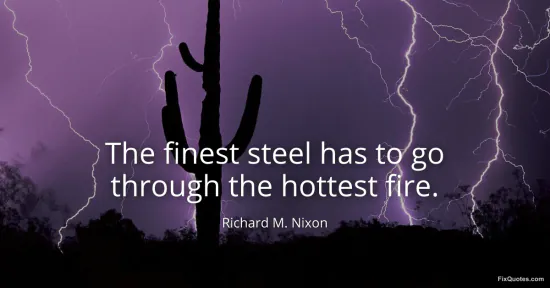 Nixon, Richard M. (2026, January 15). The finest steel has to go through the hottest fire. FixQuotes. https://fixquotes.com/quotes/the-finest-steel-has-to-go-through-the-hottest-17142/