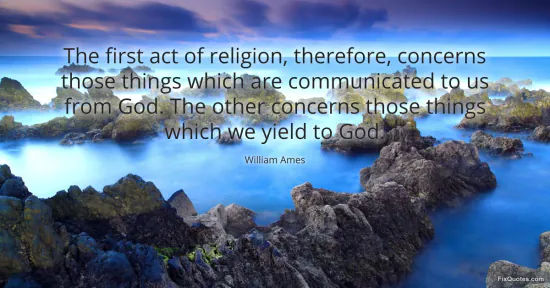 Ames, William. "The first act of religion, therefore, concerns those things which are communicated to us from God. The other concerns those things which we yield to God." FixQuotes. January 18, 2026. https://fixquotes.com/quotes/the-first-act-of-religion-therefore-concerns-22861/.