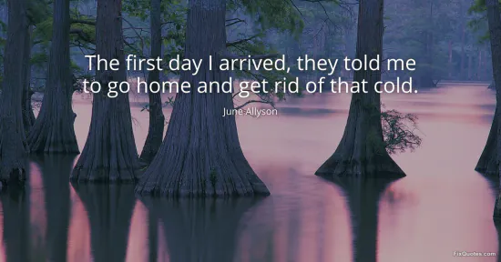 Allyson, June. "The first day I arrived, they told me to go home and get rid of that cold." FixQuotes. January 16, 2026. https://fixquotes.com/quotes/the-first-day-i-arrived-they-told-me-to-go-home-113761/.