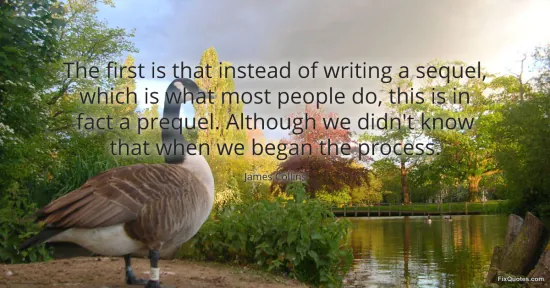 Collins, James. "The first is that instead of writing a sequel, which is what most people do, this is in fact a prequel. Although we didn't know that when we began the process." FixQuotes. January 16, 2026. https://fixquotes.com/quotes/the-first-is-that-instead-of-writing-a-sequel-122480/.