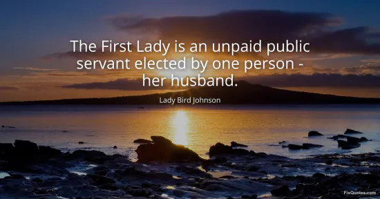 Johnson, Lady Bird. (2026, January 17). The First Lady is an unpaid public servant elected by one person - her husband. FixQuotes. https://fixquotes.com/quotes/the-first-lady-is-an-unpaid-public-servant-81039/