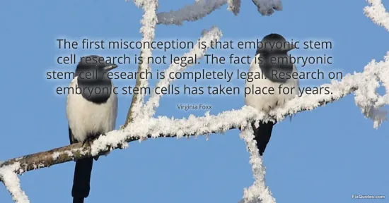 Foxx, Virginia. "The first misconception is that embryonic stem cell research is not legal. The fact is, embryonic stem cell research is completely legal. Research on embryonic stem cells has taken place for years." FixQuotes. January 16, 2026. https://fixquotes.com/quotes/the-first-misconception-is-that-embryonic-stem-120880/.