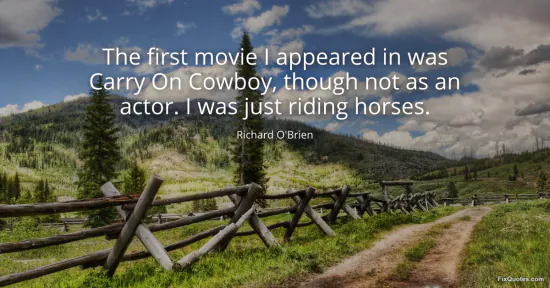 O'Brien, Richard. "The first movie I appeared in was Carry On Cowboy, though not as an actor. I was just riding horses." FixQuotes. January 16, 2026. https://fixquotes.com/quotes/the-first-movie-i-appeared-in-was-carry-on-cowboy-121205/.