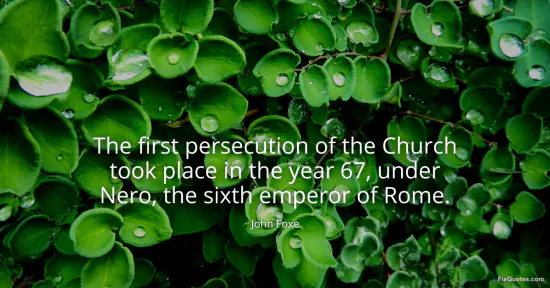 Foxe, John. "The first persecution of the Church took place in the year 67, under Nero, the sixth emperor of Rome." FixQuotes. January 17, 2026. https://fixquotes.com/quotes/the-first-persecution-of-the-church-took-place-in-71253/.