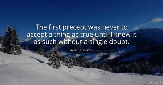 Descartes, Rene. "The first precept was never to accept a thing as true until I knew it as such without a single doubt." FixQuotes. January 18, 2026. https://fixquotes.com/quotes/the-first-precept-was-never-to-accept-a-thing-as-1330/.