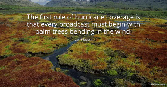 Hiaasen, Carl. "The first rule of hurricane coverage is that every broadcast must begin with palm trees bending in the wind." FixQuotes. January 16, 2026. https://fixquotes.com/quotes/the-first-rule-of-hurricane-coverage-is-that-98922/.