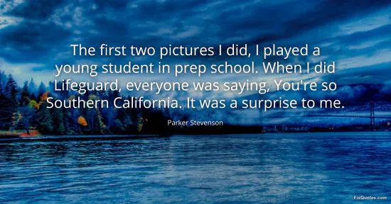 Stevenson, Parker. "The first two pictures I did, I played a young student in prep school. When I did Lifeguard, everyone was saying, You're so Southern California. It was a surprise to me." FixQuotes. January 15, 2026. https://fixquotes.com/quotes/the-first-two-pictures-i-did-i-played-a-young-152584/.