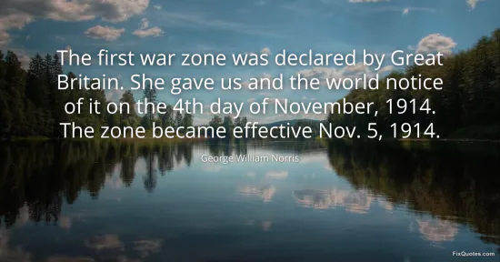 Norris, George William. (2026, January 17). The first war zone was declared by Great Britain. She gave us and the world notice of it on the 4th day of November, 1914. The zone became effective Nov. 5, 1914. FixQuotes. https://fixquotes.com/quotes/the-first-war-zone-was-declared-by-great-britain-59523/