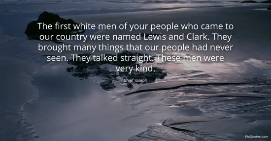 Joseph, Chief. "The first white men of your people who came to our country were named Lewis and Clark. They brought many things that our people had never seen. They talked straight. These men were very kind." FixQuotes. January 18, 2026. https://fixquotes.com/quotes/the-first-white-men-of-your-people-who-came-to-18959/.