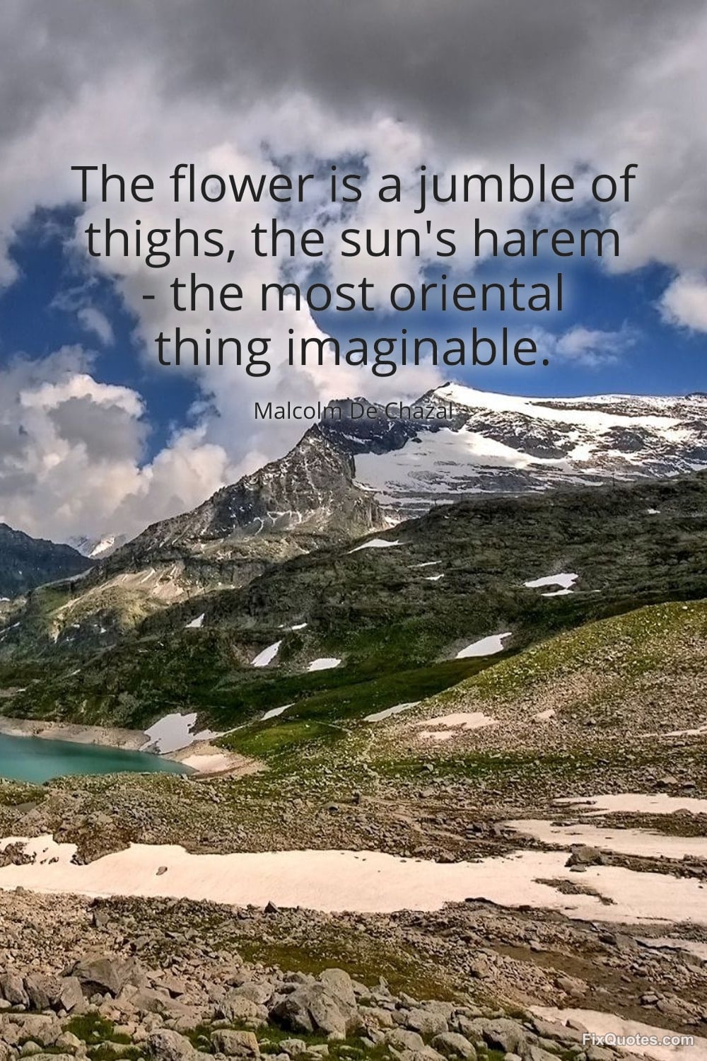 Chazal, Malcolm De. (2026, January 16). The flower is a jumble of thighs, the sun's harem - the most oriental thing imaginable. FixQuotes. https://fixquotes.com/quotes/the-flower-is-a-jumble-of-thighs-the-suns-harem-87473/