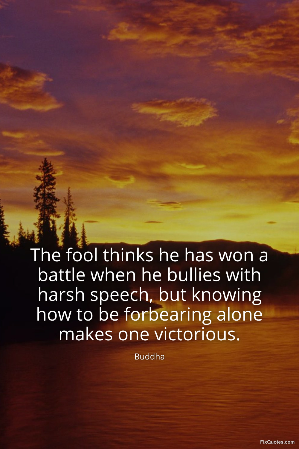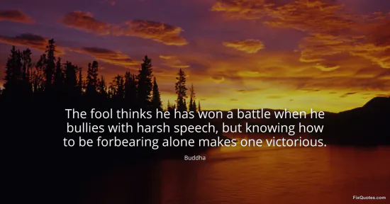Buddha. (2026, March 10). The fool thinks he has won a battle when he bullies with harsh speech, but knowing how to be forbearing alone makes one victorious. FixQuotes. https://fixquotes.com/quotes/the-fool-thinks-he-has-won-a-battle-when-he-185953/