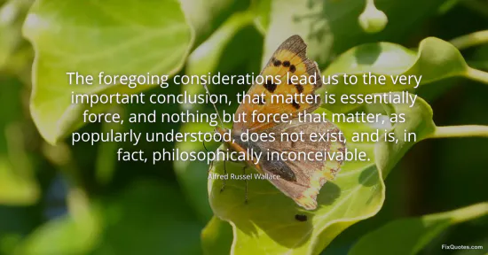 Wallace doesn’t just tweak a definition of matter here; he pulls a trapdoor under the reader’s everyday common sense. The opening - “foregoing considerations” - is the Victorian scientist’s way of saying: this isn’t a vibe, it’s a deduction. He frames the claim as the inevitable endpoint of disciplined reasoning, then detonates the folk picture of the world: solid stuff, little lumps of “something” moving around in space. Calling matter “philosophically inconceivable” isn’t an idle provocation. It’s a power move aimed at an audience still tempted by blunt materialism as the default scientific posture.
