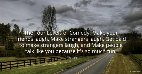 Seinfeld, Jerry. (2026, January 15). The Four Levels of Comedy: Make your friends laugh, Make strangers laugh, Get paid to make strangers laugh, and Make people talk like you because it's so much fun. FixQuotes. https://fixquotes.com/quotes/the-four-levels-of-comedy-make-your-friends-laugh-69409/