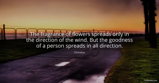 Chanakya. "The fragrance of flowers spreads only in the direction of the wind. But the goodness of a person spreads in all direction." FixQuotes. January 14, 2026. https://fixquotes.com/quotes/the-fragrance-of-flowers-spreads-only-in-the-5470/.