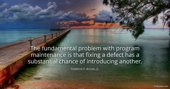 Jr., Frederick P. Brooks,. (2026, January 14). The fundamental problem with program maintenance is that fixing a defect has a substantial chance of introducing another. FixQuotes. https://fixquotes.com/quotes/the-fundamental-problem-with-program-maintenance-118528/