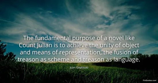 Goytisolo, Juan. (2026, January 17). The fundamental purpose of a novel like Count Julian is to achieve the unity of object and means of representation, the fusion of treason as scheme and treason as language. FixQuotes. https://fixquotes.com/quotes/the-fundamental-purpose-of-a-novel-like-count-78369/