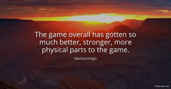 Hingis, Martina. (2026, January 16). The game overall has gotten so much better, stronger, more physical parts to the game. FixQuotes. https://fixquotes.com/quotes/the-game-overall-has-gotten-so-much-better-108154/