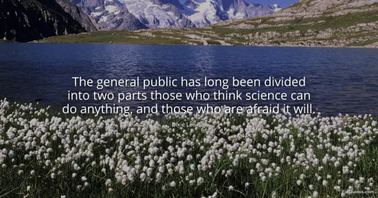 "The general public has long been divided into two parts those who think science can do anything, and those who are afraid it will." FixQuotes, 17 Jan. 2026, https://fixquotes.com/quotes/the-general-public-has-long-been-divided-into-two-81887/. Accessed 12 Feb. 2026.