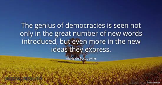 Tocqueville, Alexis de. "The genius of democracies is seen not only in the great number of new words introduced, but even more in the new ideas they express." FixQuotes. February 20, 2026. https://fixquotes.com/quotes/the-genius-of-democracies-is-seen-not-only-in-the-3495/.