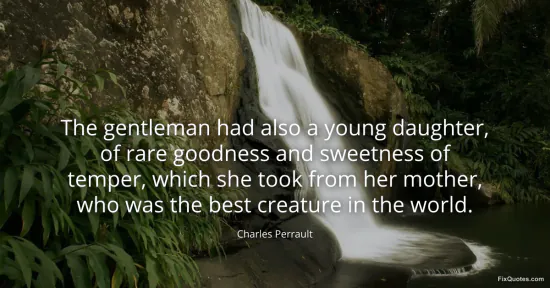Perrault, Charles. "The gentleman had also a young daughter, of rare goodness and sweetness of temper, which she took from her mother, who was the best creature in the world." FixQuotes. January 18, 2026. https://fixquotes.com/quotes/the-gentleman-had-also-a-young-daughter-of-rare-8780/.