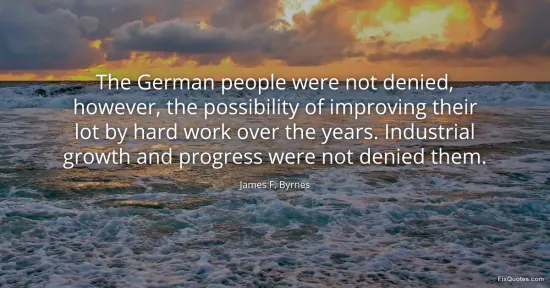 Byrnes, James F. "The German people were not denied, however, the possibility of improving their lot by hard work over the years. Industrial growth and progress were not denied them." FixQuotes. January 16, 2026. https://fixquotes.com/quotes/the-german-people-were-not-denied-however-the-91474/.