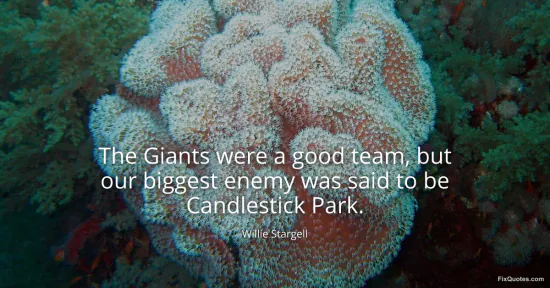Stargell, Willie. (2026, January 15). The Giants were a good team, but our biggest enemy was said to be Candlestick Park. FixQuotes. https://fixquotes.com/quotes/the-giants-were-a-good-team-but-our-biggest-enemy-157609/