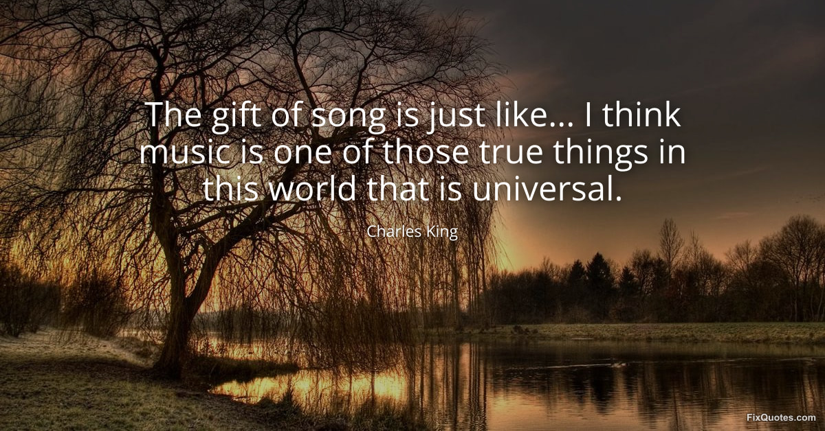 King, Charles. (2026, January 15). The gift of song is just like... I think music is one of those true things in this world that is universal. FixQuotes. https://fixquotes.com/quotes/the-gift-of-song-is-just-like-i-think-music-is-154694/
