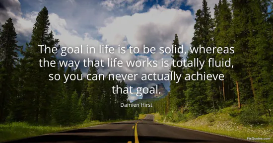 Hirst, Damien. (2026, January 16). The goal in life is to be solid, whereas the way that life works is totally fluid, so you can never actually achieve that goal. FixQuotes. https://fixquotes.com/quotes/the-goal-in-life-is-to-be-solid-whereas-the-way-110227/