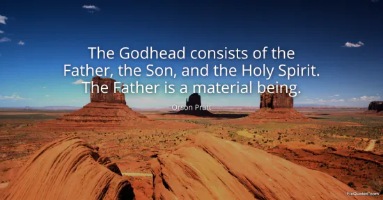 Pratt, Orson. "The Godhead consists of the Father, the Son, and the Holy Spirit. The Father is a material being." FixQuotes. January 18, 2026. https://fixquotes.com/quotes/the-godhead-consists-of-the-father-the-son-and-9835/.
