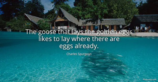 Spurgeon, Charles. "The goose that lays the golden eggs likes to lay where there are eggs already." FixQuotes. January 18, 2026. https://fixquotes.com/quotes/the-goose-that-lays-the-golden-eggs-likes-to-lay-5633/.