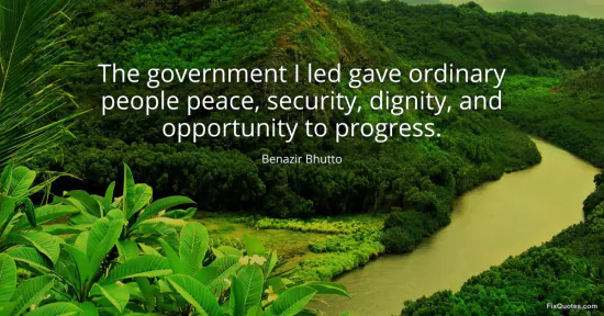 Bhutto, Benazir. (2026, January 17). The government I led gave ordinary people peace, security, dignity, and opportunity to progress. FixQuotes. https://fixquotes.com/quotes/the-government-i-led-gave-ordinary-people-peace-37198/