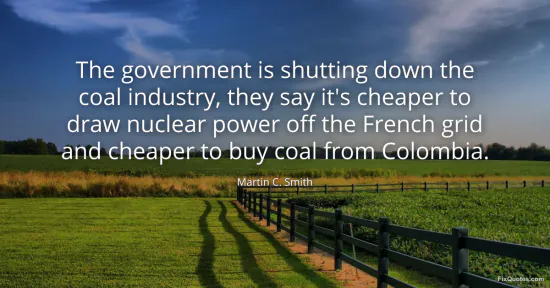Smith, Martin C. (2026, January 15). The government is shutting down the coal industry, they say it's cheaper to draw nuclear power off the French grid and cheaper to buy coal from Colombia. FixQuotes. https://fixquotes.com/quotes/the-government-is-shutting-down-the-coal-industry-162454/
