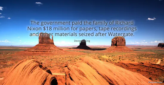 King, Dexter S. "The government paid the family of Richard Nixon $18 million for papers, tape recordings and other materials seized after Watergate." FixQuotes. January 15, 2026. https://fixquotes.com/quotes/the-government-paid-the-family-of-richard-nixon-147684/.