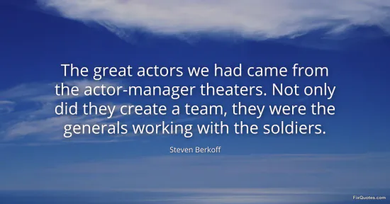 Berkoff, Steven. "The great actors we had came from the actor-manager theaters. Not only did they create a team, they were the generals working with the soldiers." FixQuotes. January 16, 2026. https://fixquotes.com/quotes/the-great-actors-we-had-came-from-the-132736/.