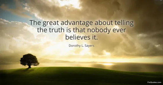 Sayers, Dorothy L. (2026, January 14). The great advantage about telling the truth is that nobody ever believes it. FixQuotes. https://fixquotes.com/quotes/the-great-advantage-about-telling-the-truth-is-25891/