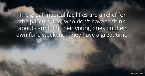 Gertz, Jami. (2026, January 15). The great medical facilities are a relief for the parents, too, who don't have to think about caring for their young ones on their own for a weekend. They have a great time. FixQuotes. https://fixquotes.com/quotes/the-great-medical-facilities-are-a-relief-for-the-147049/