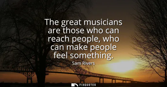 Greatness in music is not the speed of a run or the complexity of a chart; it is the mysterious moment when a sound reaches across the air and alters the listener. Sam Rivers, the avant-garde jazz saxophonist and bandleader, put the standard plainly: the artist who makes people feel something earns the word great. Technique, theory, and innovation are tools, not goals. They are the scaffolding around a more fragile architecture, the bridge between private imagination and shared experience.