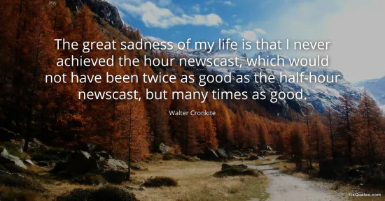 Cronkite, Walter. "The great sadness of my life is that I never achieved the hour newscast, which would not have been twice as good as the half-hour newscast, but many times as good." FixQuotes. January 16, 2026. https://fixquotes.com/quotes/the-great-sadness-of-my-life-is-that-i-never-82978/.