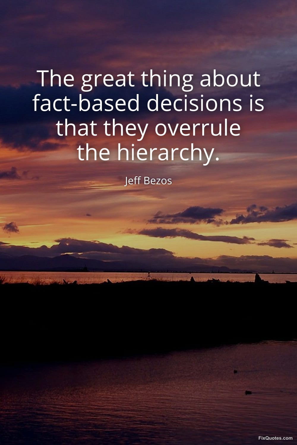 Bezos, Jeff. "The great thing about fact-based decisions is that they overrule the hierarchy." FixQuotes. March 25, 2026. https://fixquotes.com/quotes/the-great-thing-about-fact-based-decisions-is-186351/.
