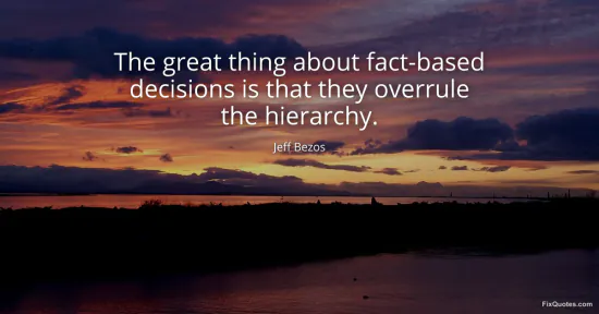 Bezos, Jeff. (2026, March 25). The great thing about fact-based decisions is that they overrule the hierarchy. FixQuotes. https://fixquotes.com/quotes/the-great-thing-about-fact-based-decisions-is-186351/