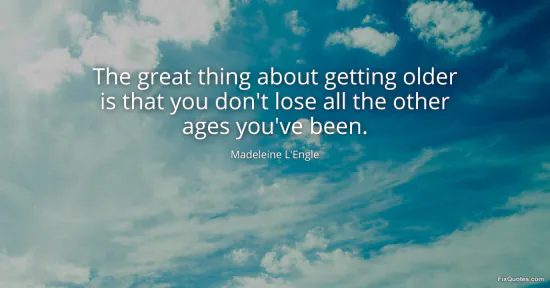 L'Engle, Madeleine. "The great thing about getting older is that you don't lose all the other ages you've been." FixQuotes. January 14, 2026. https://fixquotes.com/quotes/the-great-thing-about-getting-older-is-that-you-114445/.